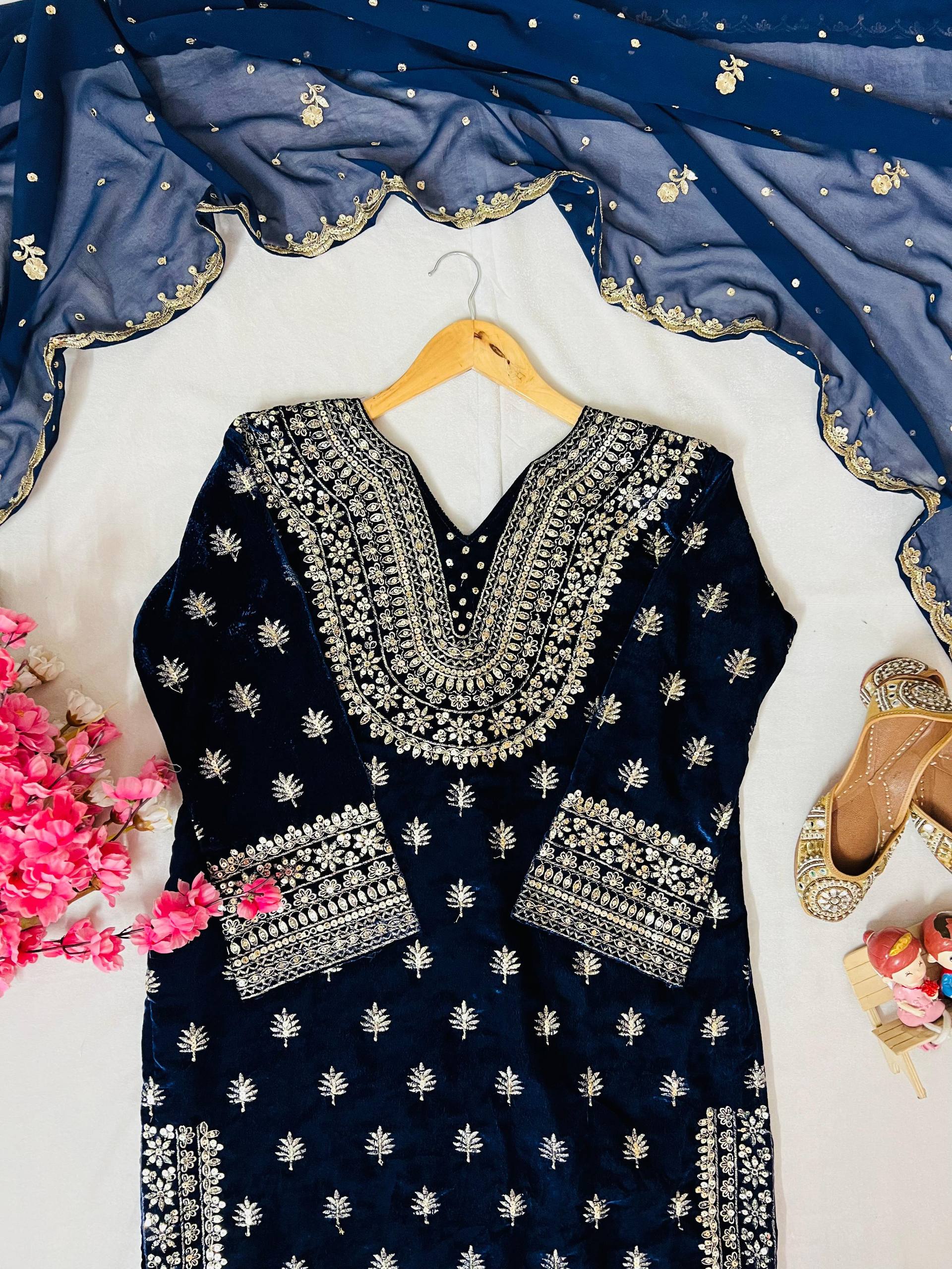 ENHANCE THE BEAUTY OF YOUR WARDROBE WITH THIS NEWLY LAUNCHED VELVET KURTI-PLAZZO SET