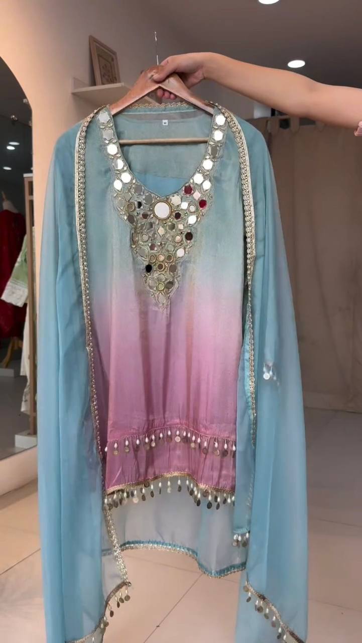 Step into effortless elegance with this beautifully designed three-piece plazo set, featuring soft fabrics, intricate mirror and embroidery work, and a stylish printed dupatta. Perfect for festive occasions, casual gatherings, or day-to-evening transitions.