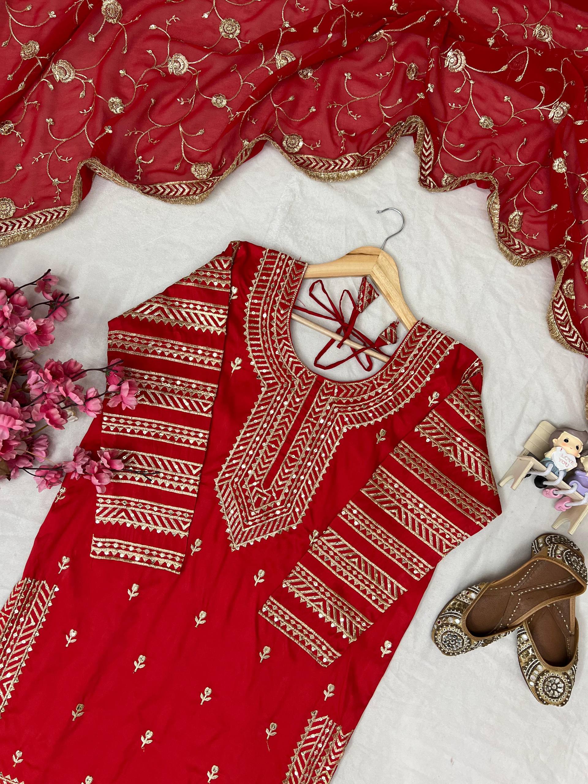 Work: Beautiful 5mm sequins and zari embroidery work with canvas patta stitched at the border