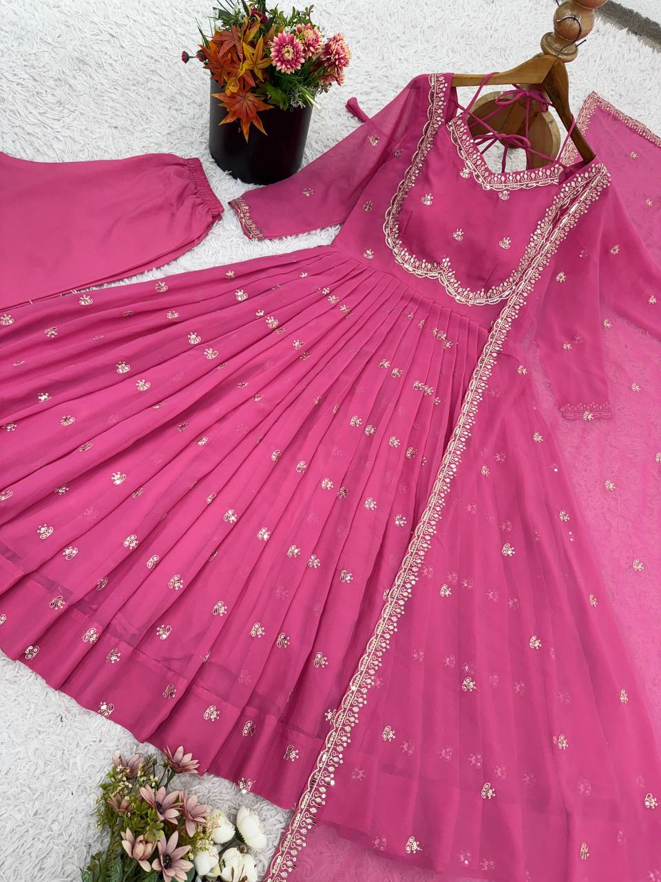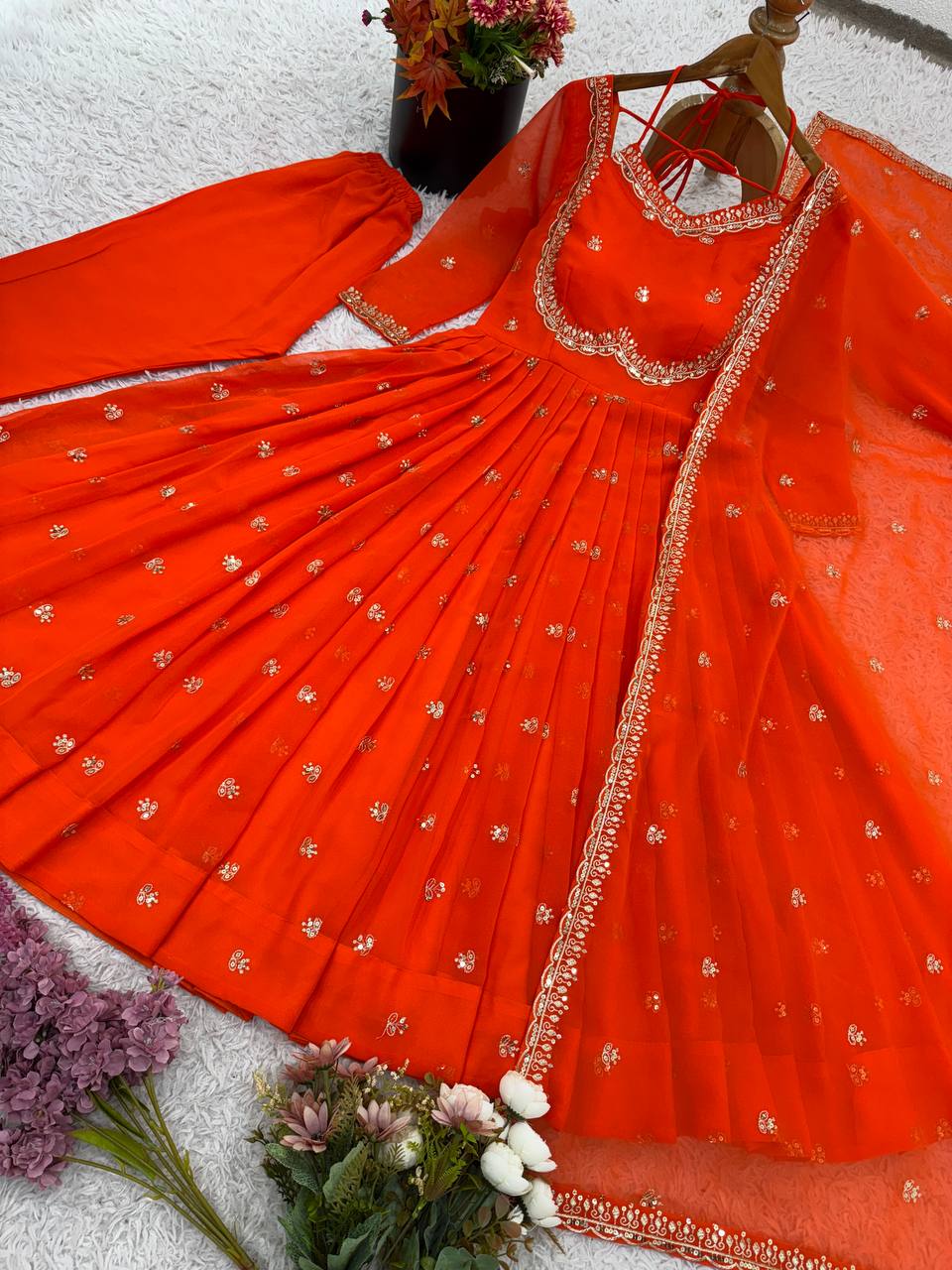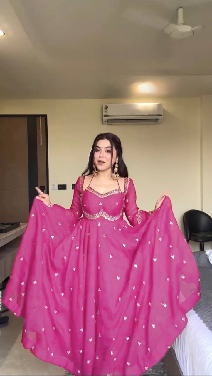 • Fabric: Heavy Faux Georgette with Heavy Embroidery and Sequin Work