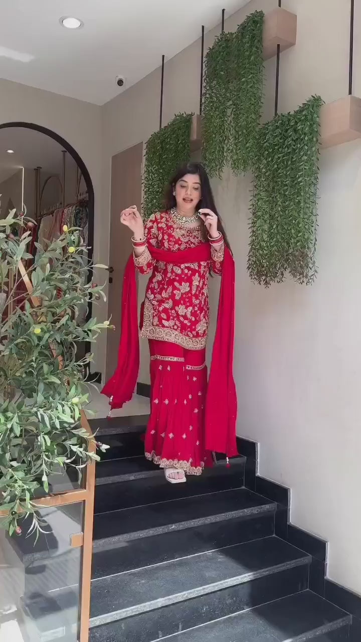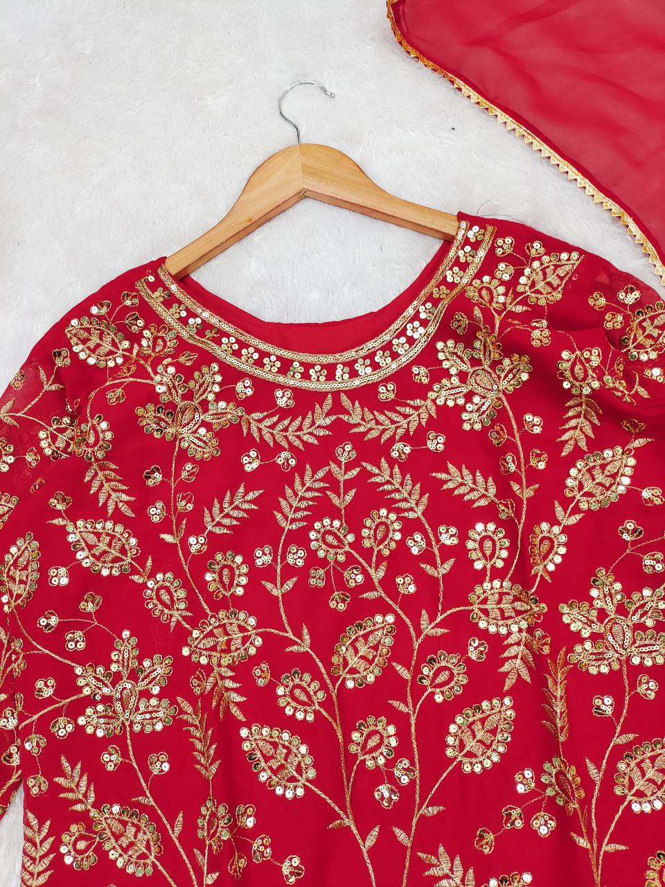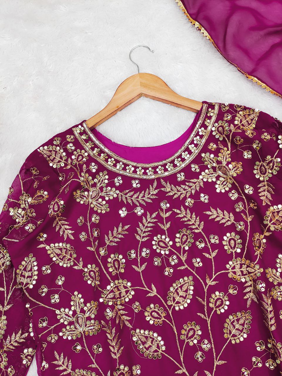 Fabric: Faux Georgette with Multi-Thread Embroidery and Sequence Work